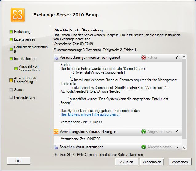 AdministratorMit der Fehlermeldung ADToolsNeeded bricht der Installer ab. Tatsächlich benötigt wird jedoch die IIS-6 Verwaltungskonsole.