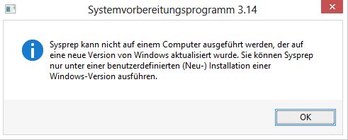 AdministratorWindows Installationen, die auf eine neuere Version von Windows aktualisiert wurden, können nicht mehr mit Sysprep verallgemeinert werden.