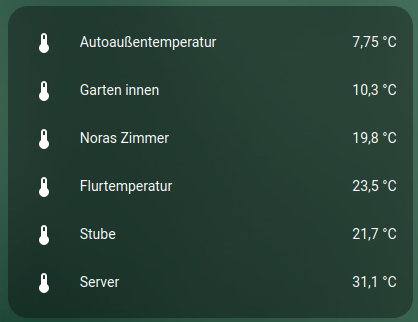 Ich habe meine Heimautomation von OpenHab2 nun auf Homeassistant umgestellt. Das Zentrum bildet ein Touchscreen in der Küche. (Google Chrome auf einem Microsoft Surface RT mit Raspberry OS)