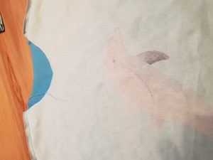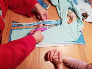- Anhand des T-Shirts ausschneiden mit genügend Abstand zum Umnähen.