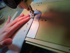 - Nun werden die Teile aneinander genäht und alle Enden noch einmal umgenäht.