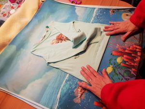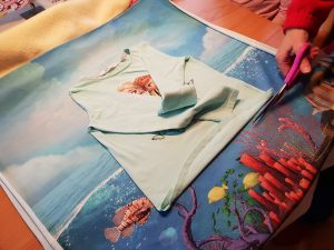 - Ein vorhandenes passendes T-Shirt auflegen, um das Motiv zu zentrieren und die Stoffmenge abzuschätzen.