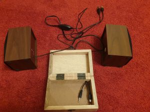 - Ein Loch für das Micro-USB-Kabel und die Boxen in die hinterste Ecke bohren.