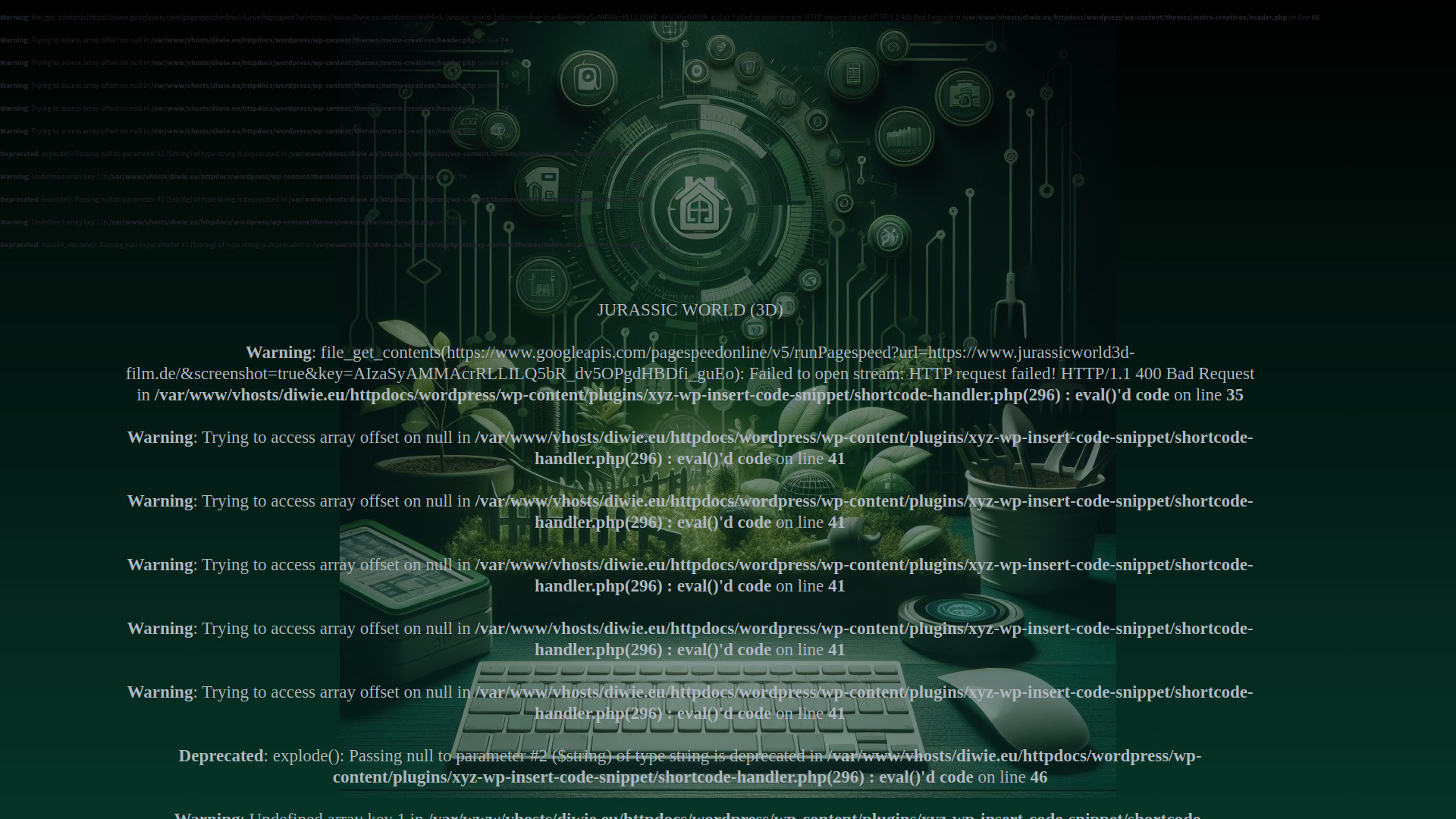 Warning: file_get_contents(https://www.googleapis.com/pagespeedonline/v5/runPagespeed?url=https://www.jurassicworld3d-film.de/&screenshot=true&key=AIzaSyAMMAcrRLLILQ5bR_dv5OPgdHBDfi_guEo): Failed to open stream: HTTP request failed! HTTP/1.1 400 Bad Request in /var/www/vhosts/diwie.eu/httpdocs/wordpress/wp-content/plugins/xyz-wp-insert-code-snippet/shortcode-handler.php(296) : eval()'d code on line 35