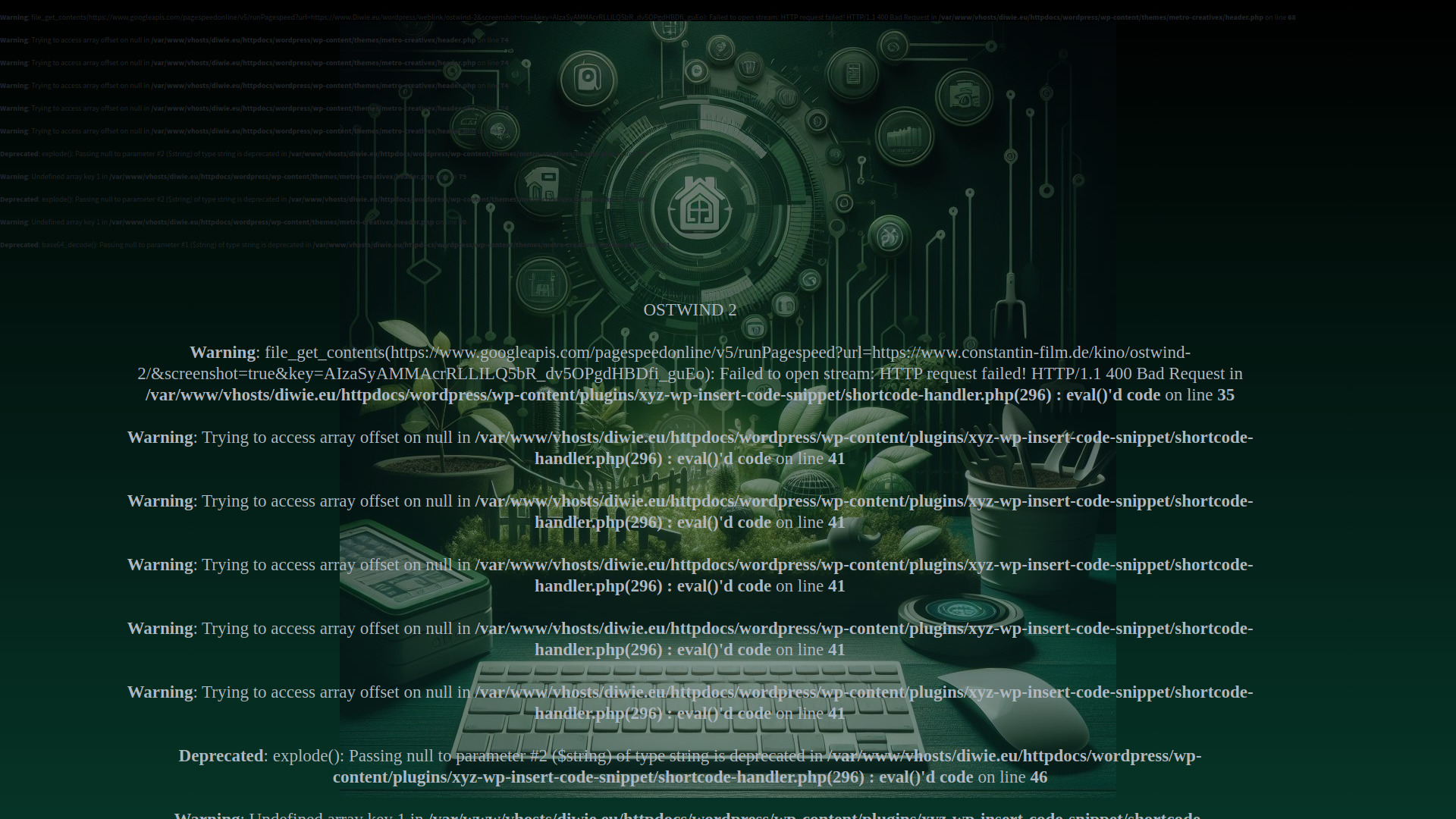 Warning: file_get_contents(https://www.googleapis.com/pagespeedonline/v5/runPagespeed?url=https://www.constantin-film.de/kino/ostwind-2/&screenshot=true&key=AIzaSyAMMAcrRLLILQ5bR_dv5OPgdHBDfi_guEo): Failed to open stream: HTTP request failed! HTTP/1.1 400 Bad Request in /var/www/vhosts/diwie.eu/httpdocs/wordpress/wp-content/plugins/xyz-wp-insert-code-snippet/shortcode-handler.php(296) : eval()'d code on line 35